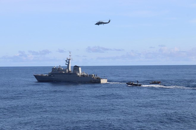 The SAR serial was followed by maritime interdiction with boarding parties and at sea manoeuvring with the Kenyan research/survey vessel KHS Shujaa.