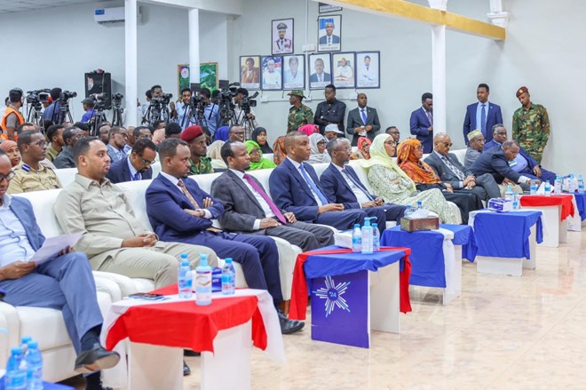 Somalia Prime Minister Hamza Abdi Barre and other dignitaries at the launch of Media Emergency Health Centre in Mogadishu [HANDOUT]