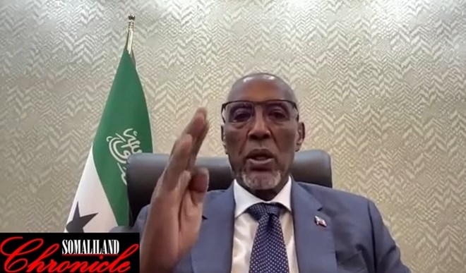 Former Somaliland President Muse Bihi Abdi speaks during an interview with the Somaliland Chronicle, where he claimed African Union pressure derailed a planned deal between Somaliland and Ethiopia and alleged that Ethiopian Prime Minister Abiy Ahmed once sought to bring Somalia’s former president Mohamed Abdullahi Farmaajo to Hargeisa. CREDIT/ Somaliland Chronicle