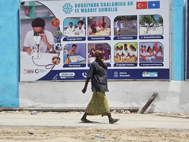 A woman walks past a Turkish-run school in Mogadishu on Aug. 2. Such schools have increased in numbers over the years.Mohamed Gabobe for Foreign PolicyFor Turkey, the 2011 famine in Somalia that killed some 250,000 people was a pathway into the strategically significant Horn of Africa, and soon thereafter, Turkish aid groups, organizations, and companies would flood the country.